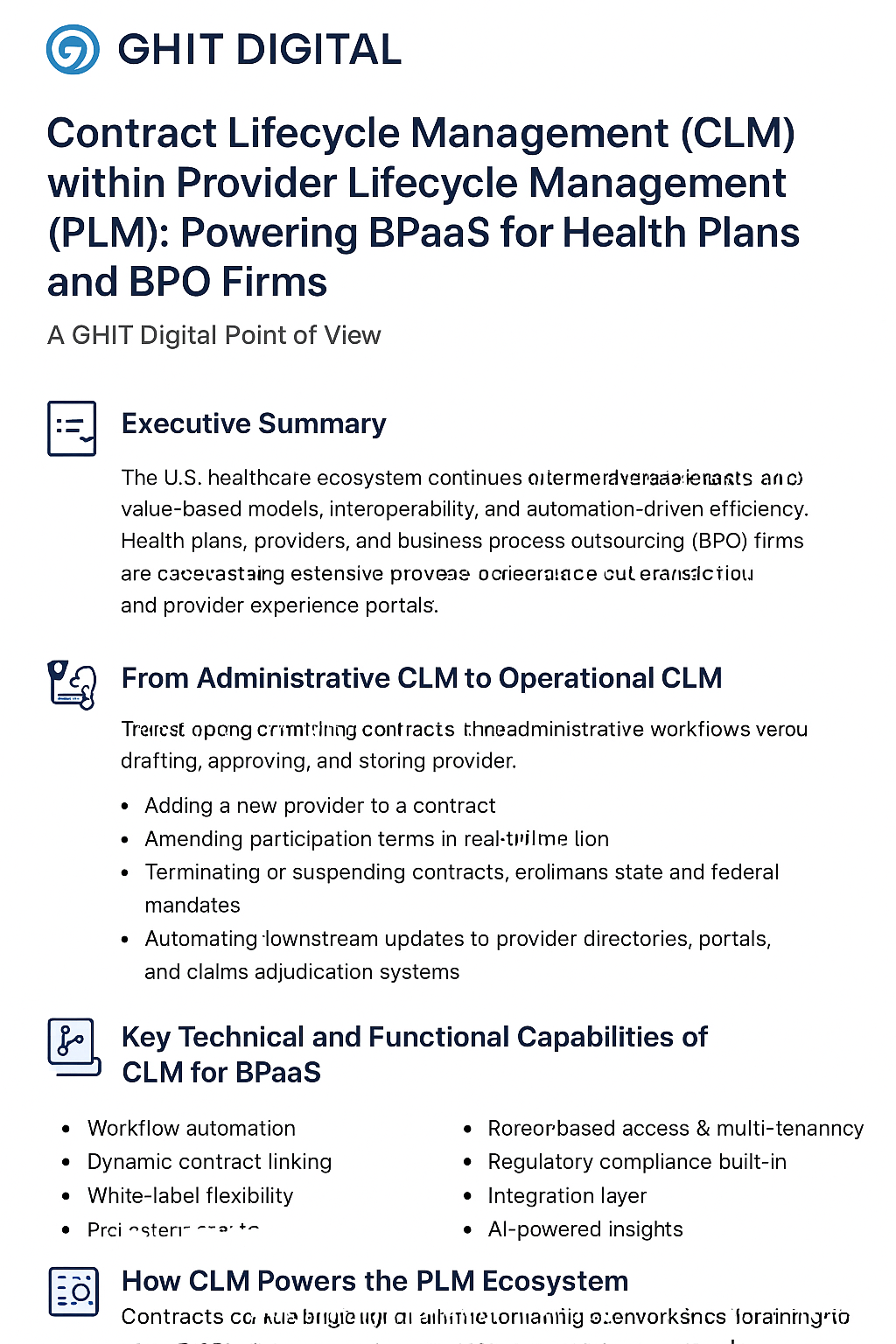 Contract Lifecycle Management (CLM) within Provider Lifecycle Management (PLM): Powering BPaaS for Health Plans and BPO Firms